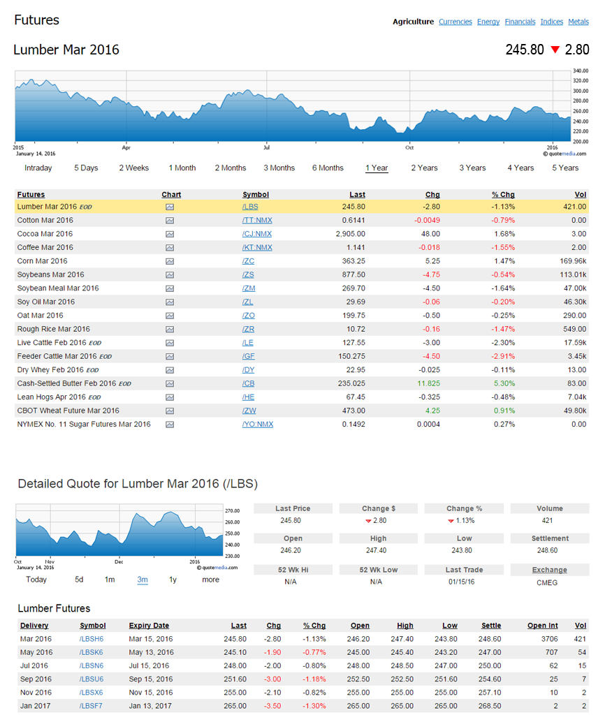 QuoteMedia's Futures and Commodities widgets and content feeds provide comprehensive Futures and Commodities data for all major North American exchanges including: